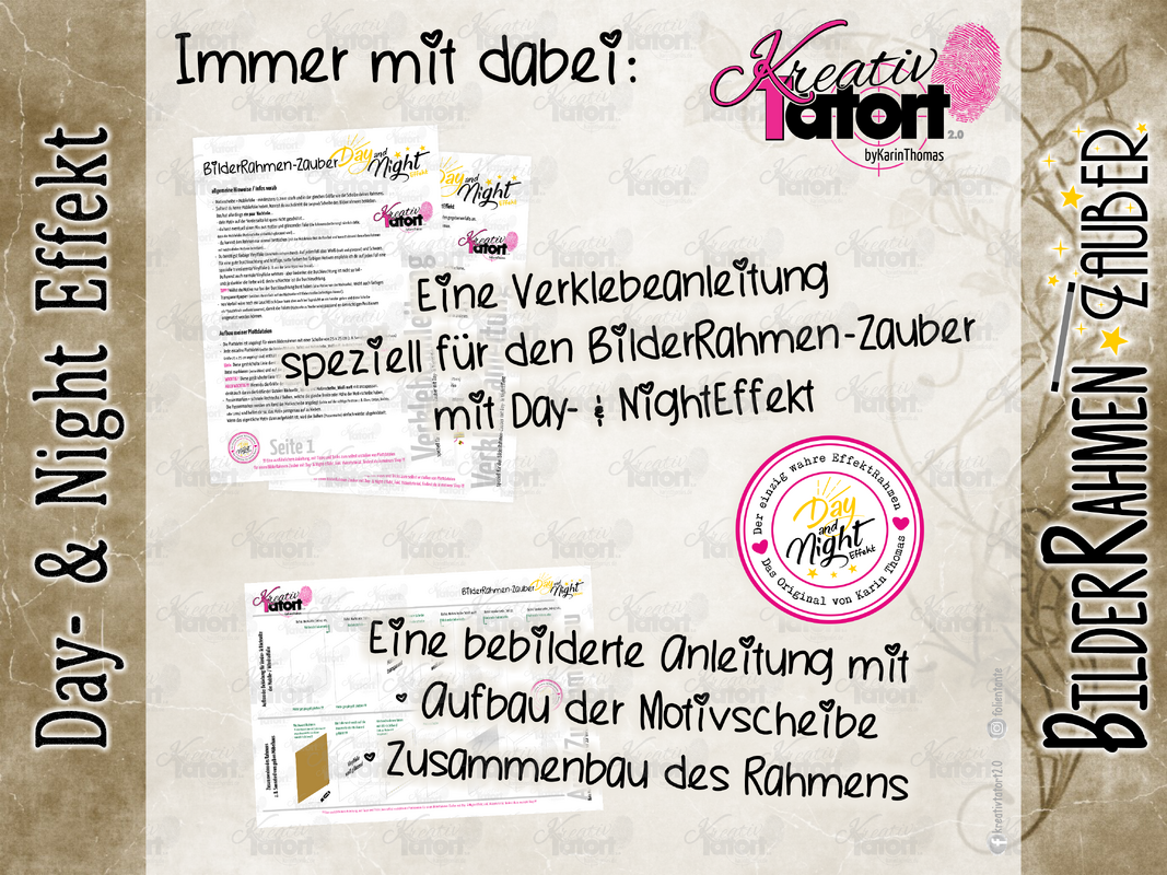 • eine Verklebeanleitung speziell für den BilderRahmen-Zauber mit Day- & NightEffekt...
