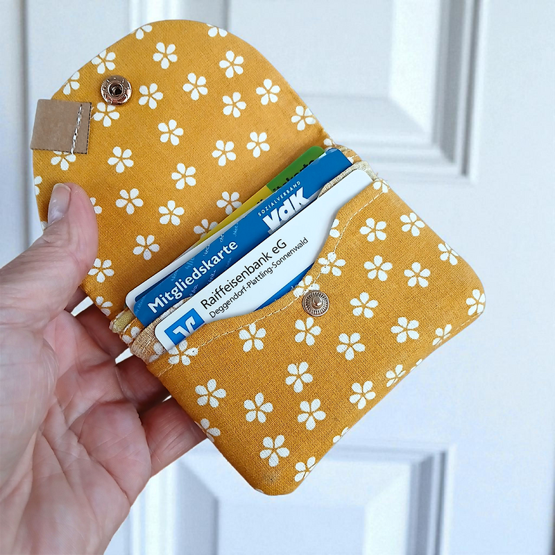 Du hast dein ganzes „Leben“ in deinem Portemonnaie und überlegst, ein paar Karten auszulagern, um z.B. bei einem Verlust der Börse nicht alles zu verlieren? Oder du hast so viele Karten, dass sie nicht mehr alle in deinen Geldbeutel passen? Dann brauchst du ein separates Etui für deine Karten. In Suses KartenHaus findest du 3 Kartenfächer für bis zu 6 Karten, ein weiteres Steckfach für weitere Karten oder kleinen Papierkram. Auf der Rückseite kannst du optional ein Klarsichtfach anbringen. Dort wäre z.B. Platz für die Busfahrkarte oder Ähnliches.