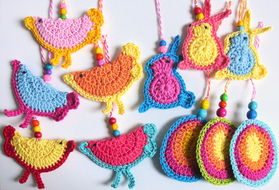 Wer Plastikeier langweilig findet und trotzdem eine hübsche und einfache Osterdekoration haben will, der häkelt sie sich doch am besten selbst! Im Handumdrehen sind nach dieser Anleitung eine kleine Hühnerschar, putzige Häschen und kunterbunte Ostereier gehäkelt.