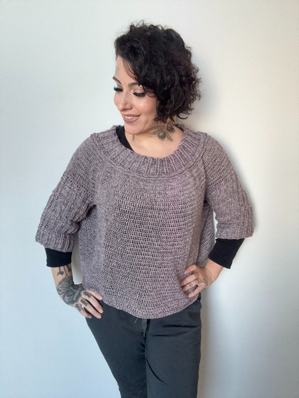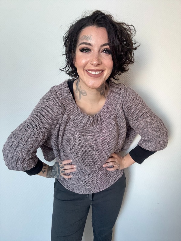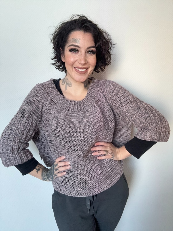 Der Pullover wird von oben nach unten in einem Stück gehäkelt. Durch diese Top-down-Konstruktion wächst das Projekt Schritt für Schritt und ermöglicht es, Länge und Passform individuell anzupassen. Die Rundpasse sorgt für einen angenehmen Sitz und ein gleichmäßiges, elegantes Maschenbild. Zum Abschluss werden die Ärmel ergänzt und verleihen dem Pullover seine ausgewogene Silhouette.