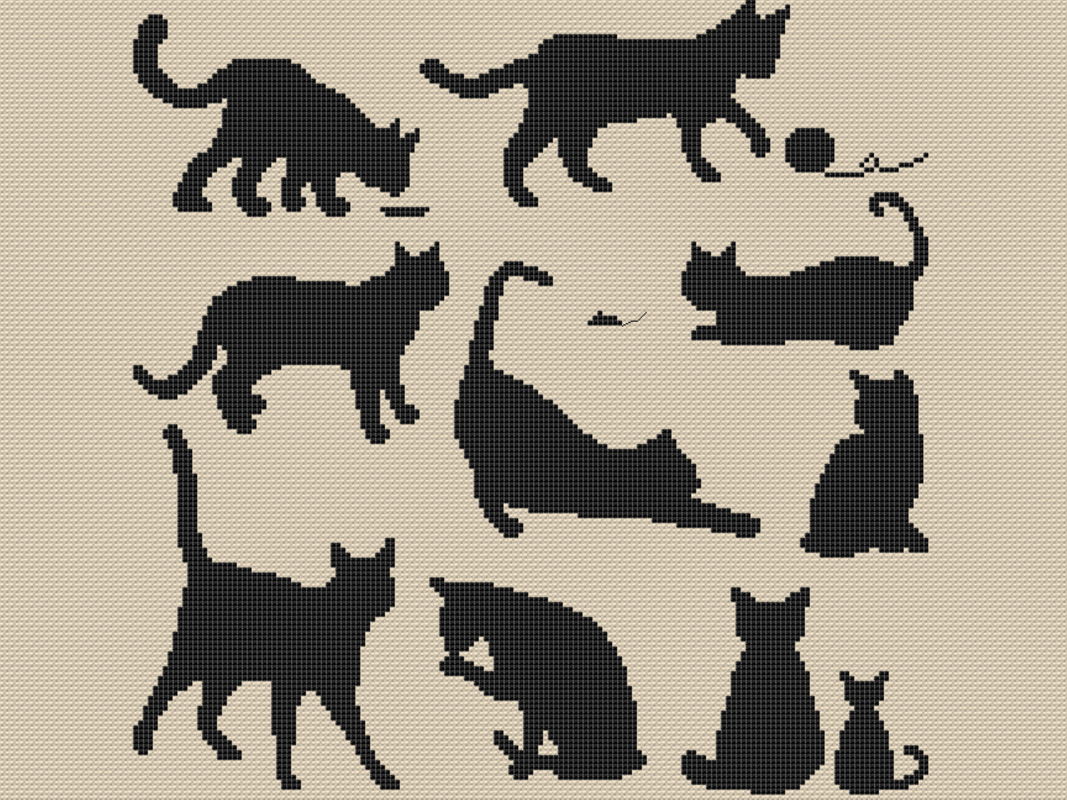 Kreuzstichvorlage Tiermotiv Katzensilhouetten,