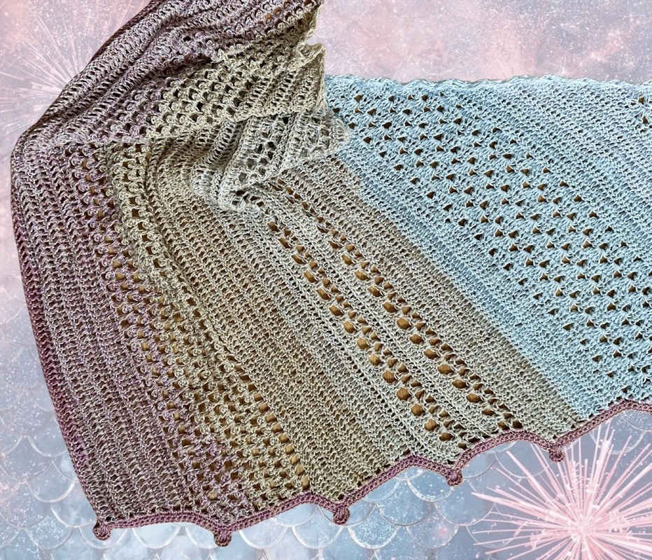 Diese Anleitung vereint ein "Best of" von 7 meiner Lieblingsanleitungen aus dem Jahr 2025 - inspiriert von Mustern, die bei meinen Kunden und mir besonders beliebt waren. Für diesen Drachenschwanzschal wurden die 7 einzelnen Muster neu gestaltet, zusammengesetzt und harmonisch miteinander kombiniert.