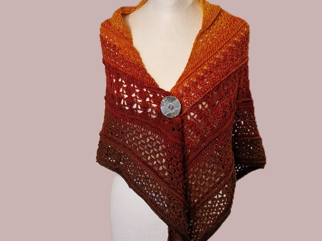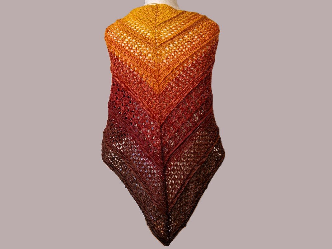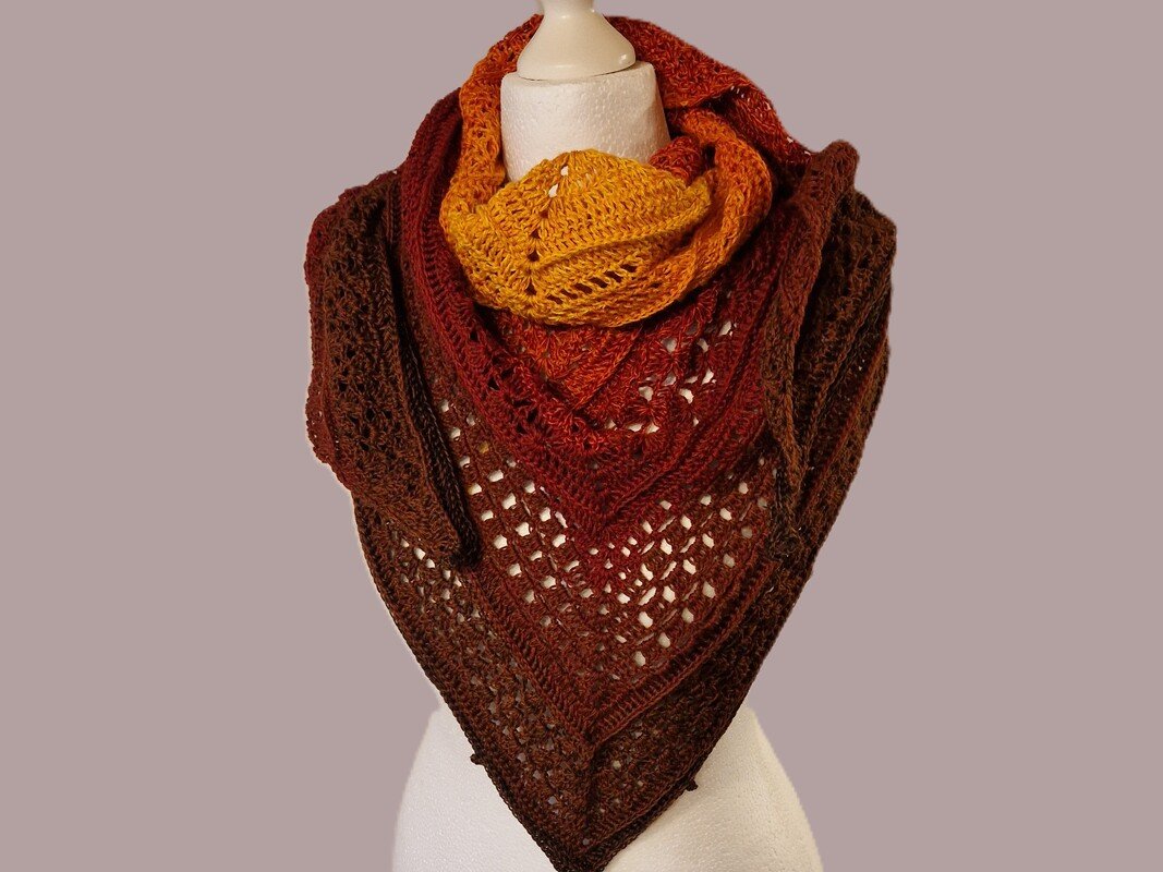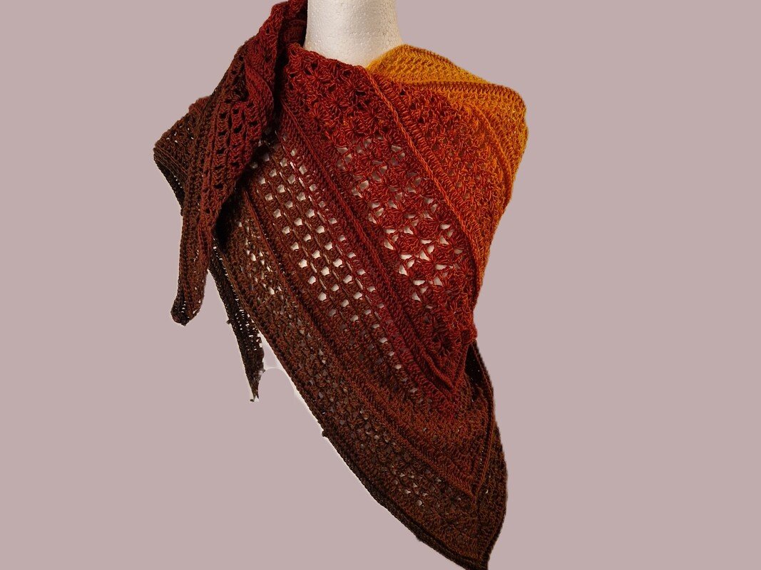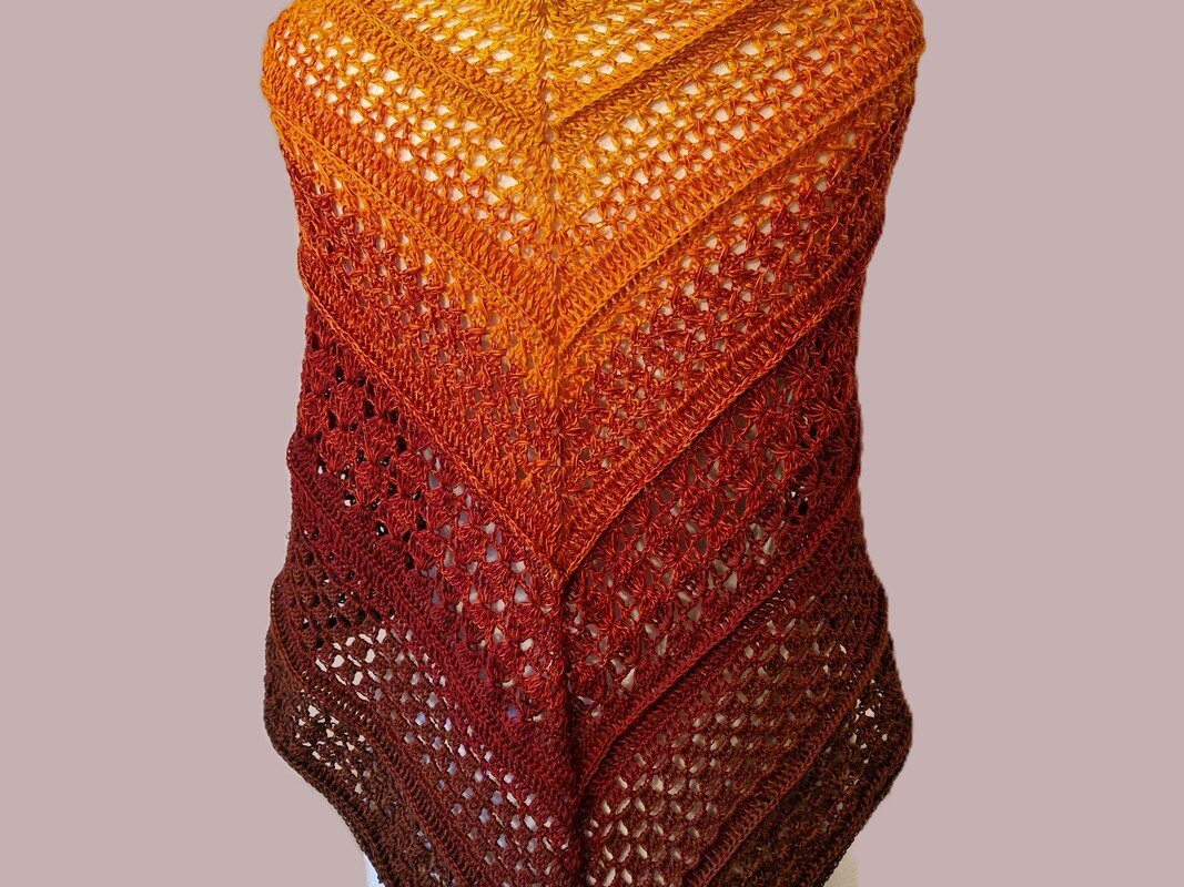 Du bekommst eine Häkelanleitung für ein tiefes symmetrisches Dreieckstuch, welches aus der Mitte heraus gearbeitet wird.