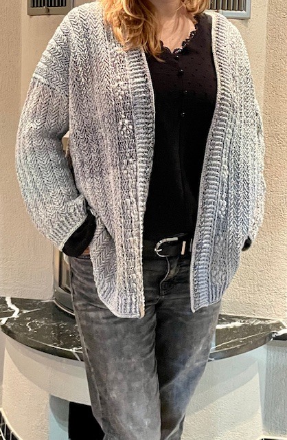 Es kann oversized mit lässiger Kapuze oder als figurbetonter Cardigan gearbeitet werden.