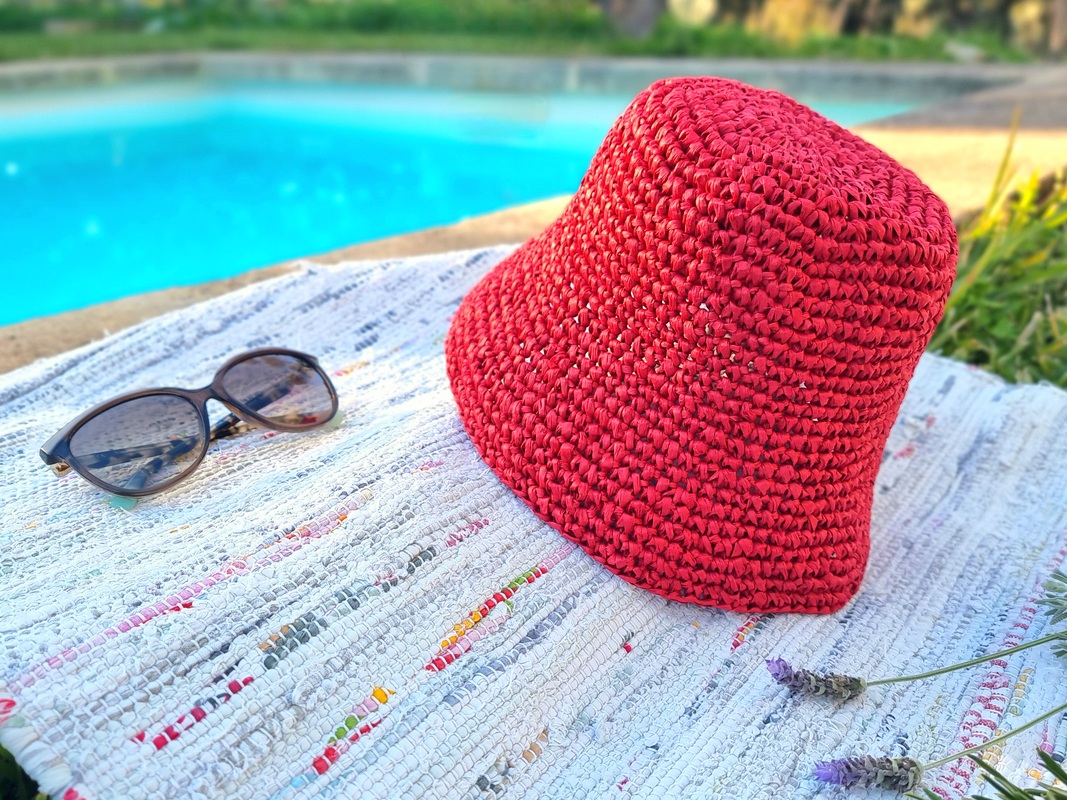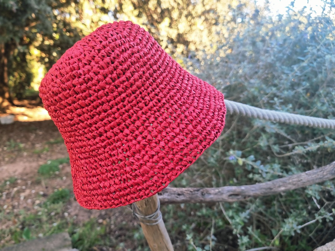 Maschenprobe im gleichen Stil wie der Hut (Runden spiralig gearbeitet)