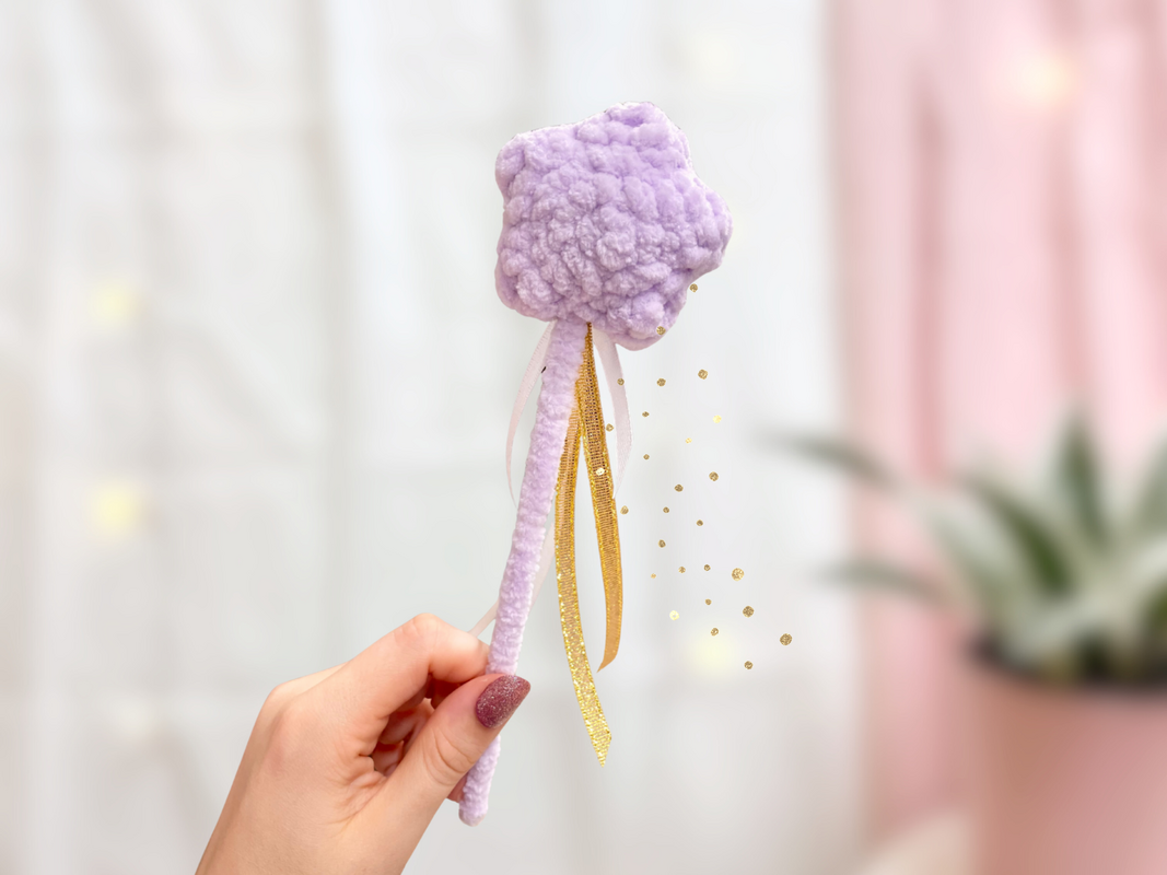 Diese Häkelanleitung zeigt dir wie du einen niedlichen Zauberstab aus feinem Chenillegarn zauberst.