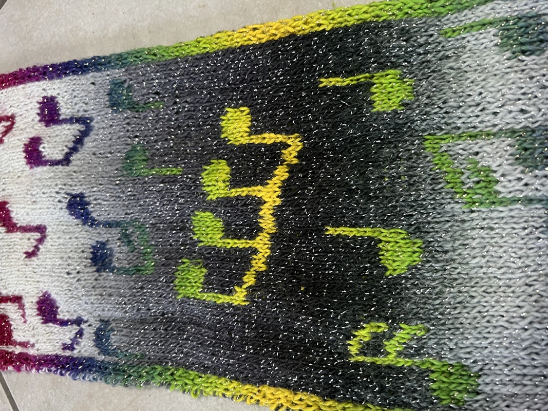 Hier gibt es die Anleitung für einen Schal mit Musikelementen.