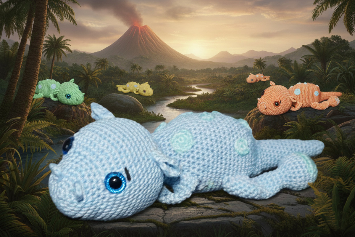 Häkelanleitung: „Berti Brontoknuddel“ – Der sanfte Urzeitfreund