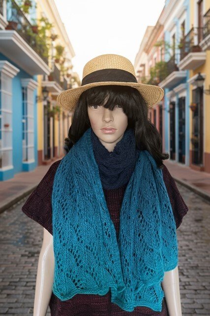Der fertige Schal ist 74cm breit und 185cm lang.