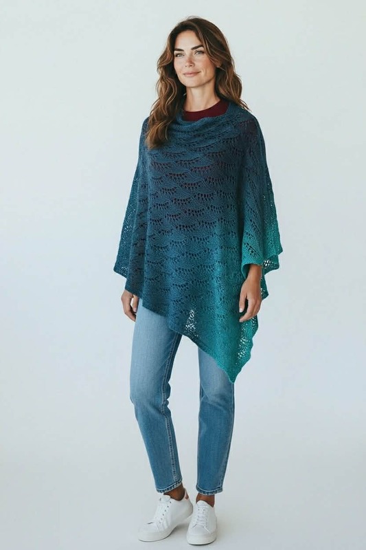 Da das Tuch sehr groß ist, habe ich noch einseitig kleine Druckknöpfe angenäht, damit ich es als Poncho tragen kann. Die kleinen Druckknöpfe fallen überhaupt nicht auf.