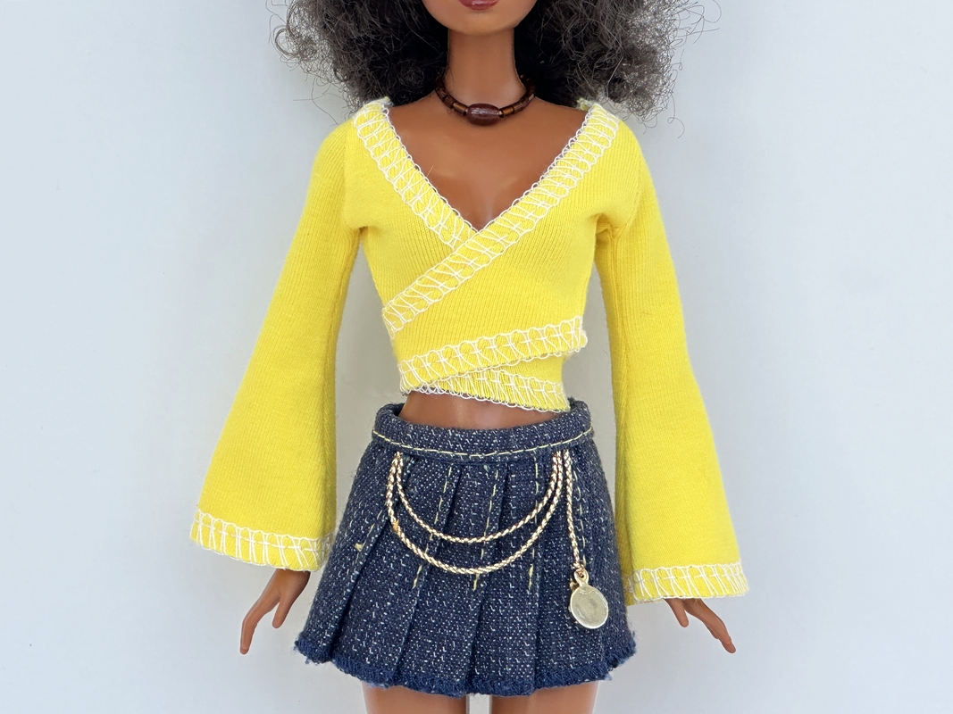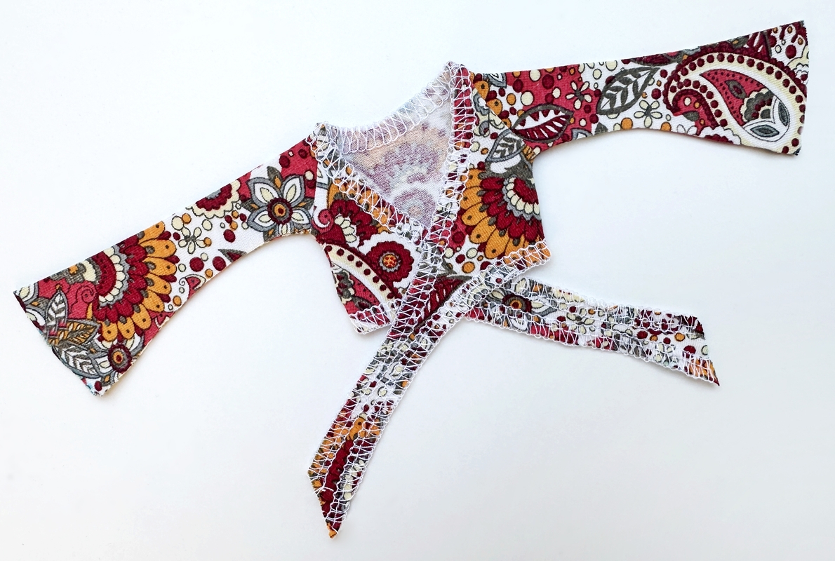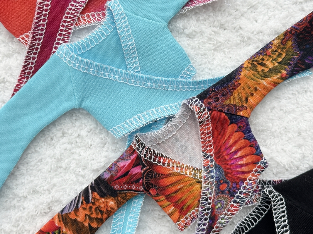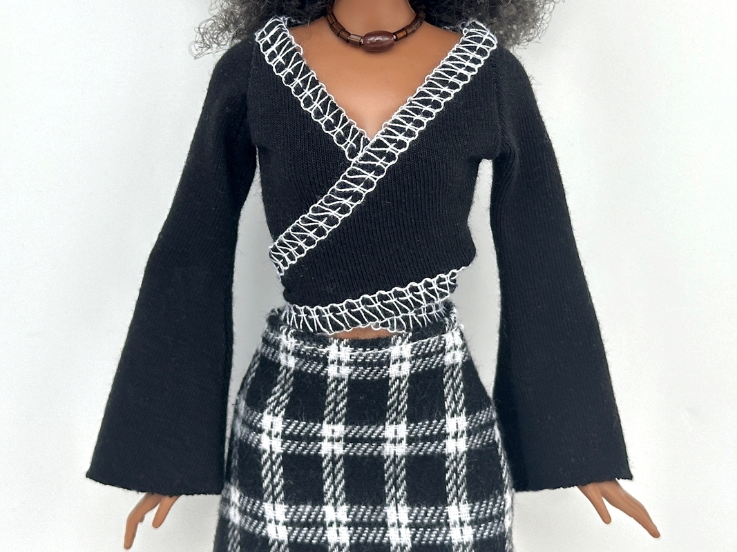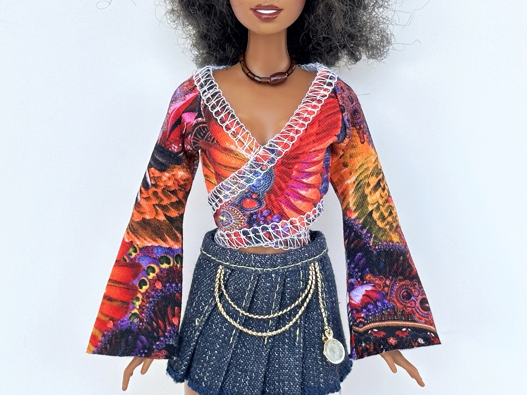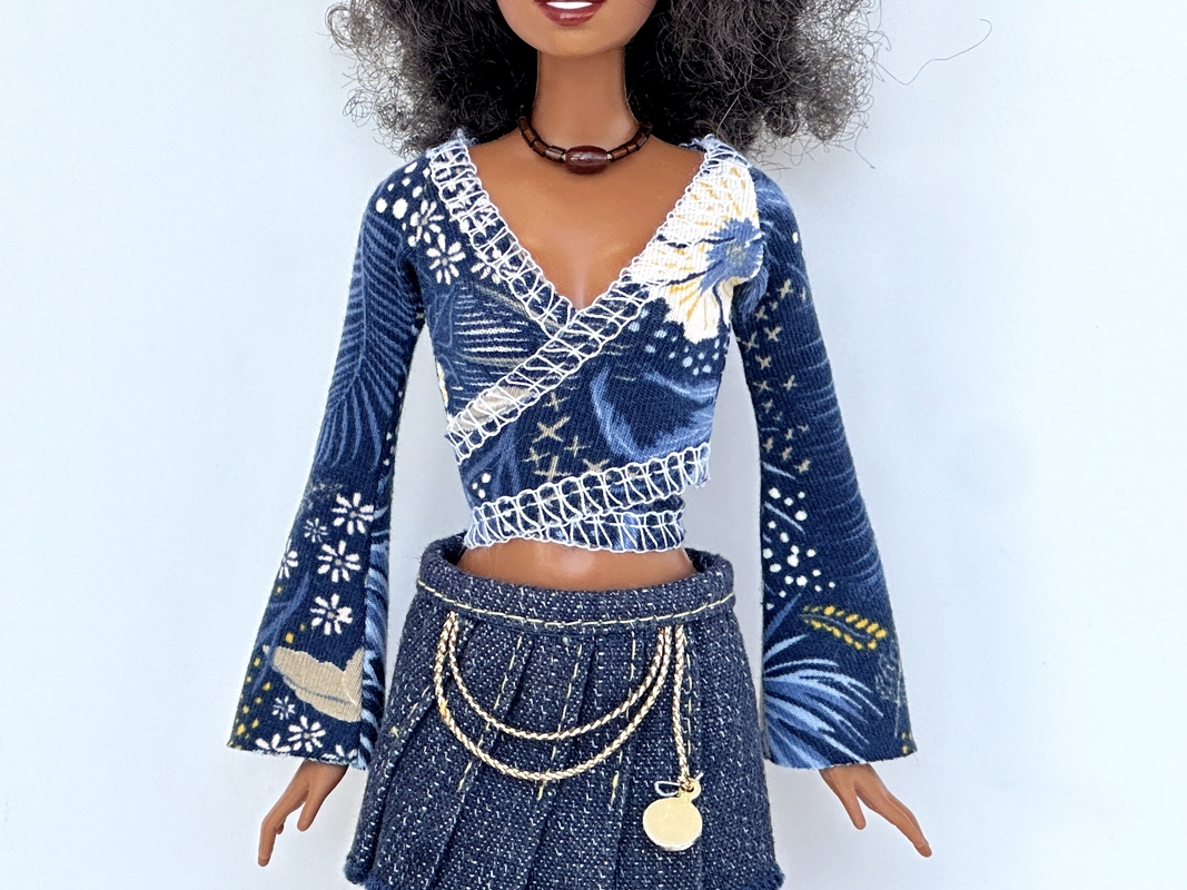 Das Wickelshirt passt allen kleinen (bekannten und weniger bekannten) Modepuppen dieser Art, die ca. 29 bis 30 cm groß sind. Das Wickelshirt kann individuell an die Figur der Puppe angepasst werden. Es wird vorn überkreuzt und hinten mit einem Doppelknoten geschlossen. Das bekommen Kinder gut alleine an- und ausgezogen. Die Ärmel können entweder auf eine feste Länge versäubert oder passend auf die individuelle Armlänge der Puppe zugeschnitten werden. Die Puppensachen sind nicht für Kinder unter 3 Jahren geeignet, da sie verschluckbare Kleinteile enthalten.