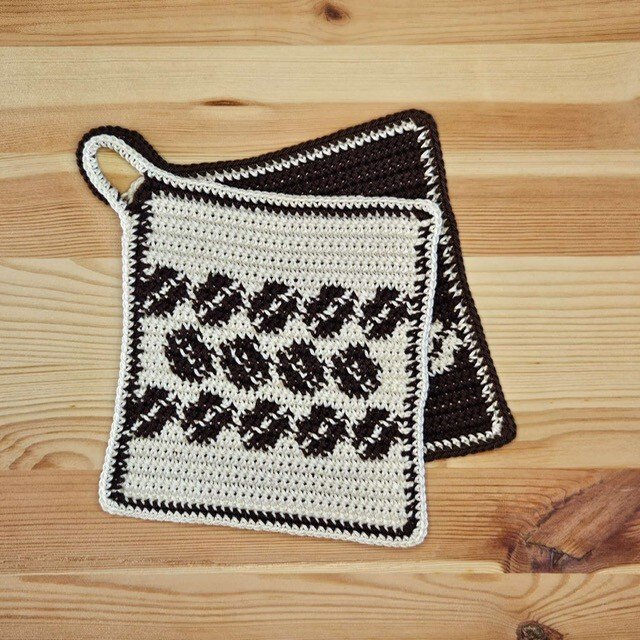 Diese Topflappen sind der Klassiker unter den gehäkelten Topflappen. Sie schützen die Hände nicht nur vor z.B. zu heißen Topfgriffen, sondern sie verschönern auch jede Küche. Gleichzeitig können sie auch als Untersetzer verwendet werden.