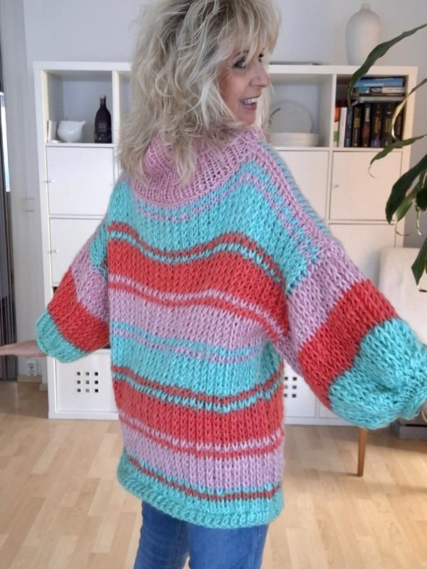 In Länge und Breite ist der Namasti variabel und kann auch figurbetonter gestrickt werden.