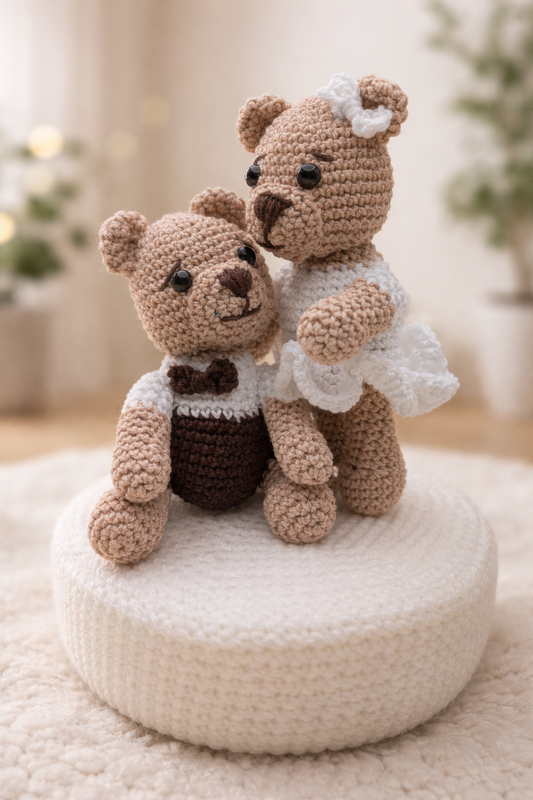 Diese Häkelanleitung ist für alle gedacht, die mehr verschenken möchten als nur ein handgemachtes Stück. Ob als Hochzeitsgeschenk, zur Verlobung, zum Jahrestag oder als bleibende Erinnerung an einen großen Tag – die Teddys sind ein Symbol für Nähe, Geborgenheit und Verbundenheit. Jeder Stich trägt dazu bei, etwas Einzigartiges zu erschaffen, das von Herzen kommt.