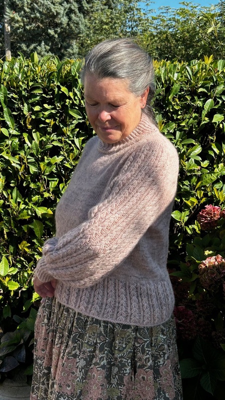 Originalgarn: Mondlichtgarne Singlegarn 56 % Merino, 44 % Kid Mohair in der Farbe „Rosencottage“ bzw. „Birke“ , LL 360 m/100g.
