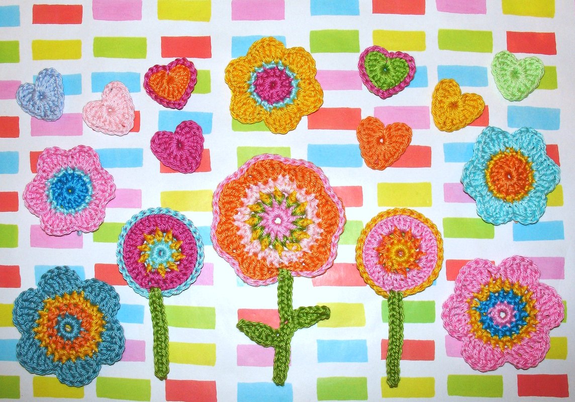 Häkel dir und deinen Liebsten kunterbunte Blümchen, Herzchen und Buttons, um eure Welt ein wenig farbenfroher und bunter zu gestalten!