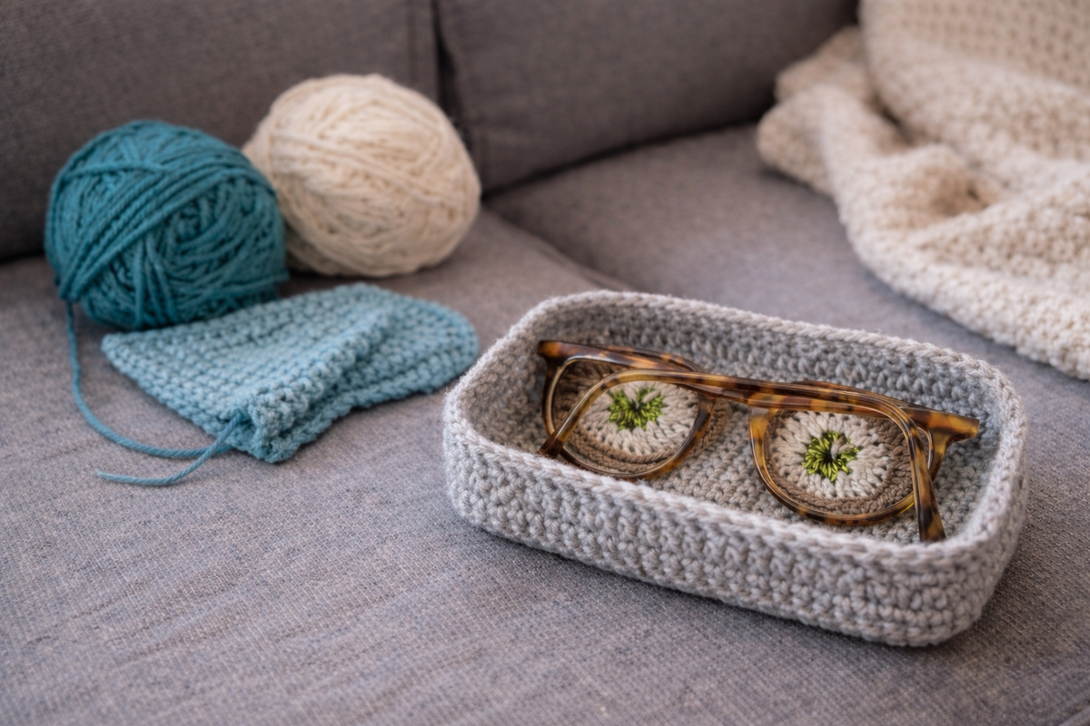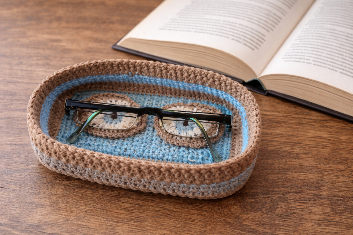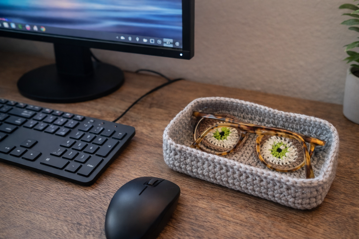 Ob am Arbeitsplatz, auf dem Nachttisch, neben dem Sofa oder bei den Handarbeitssachen – die Schale behält deine Brille im Blick.