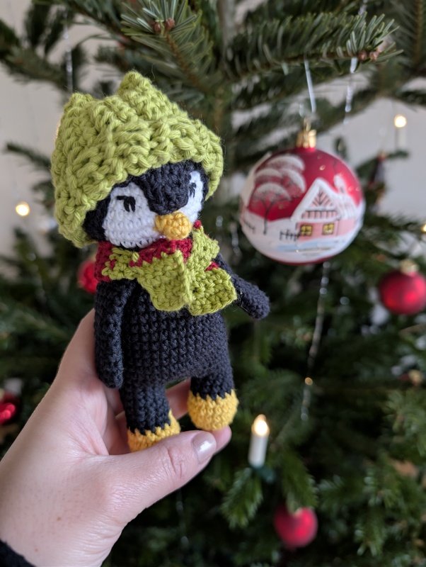 Häkelnadel: Stärke 3mm für den Pinguin und den Schal, Stärke 4mm für die Mütze.