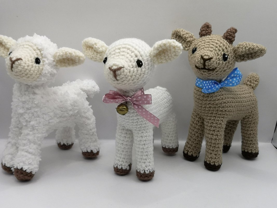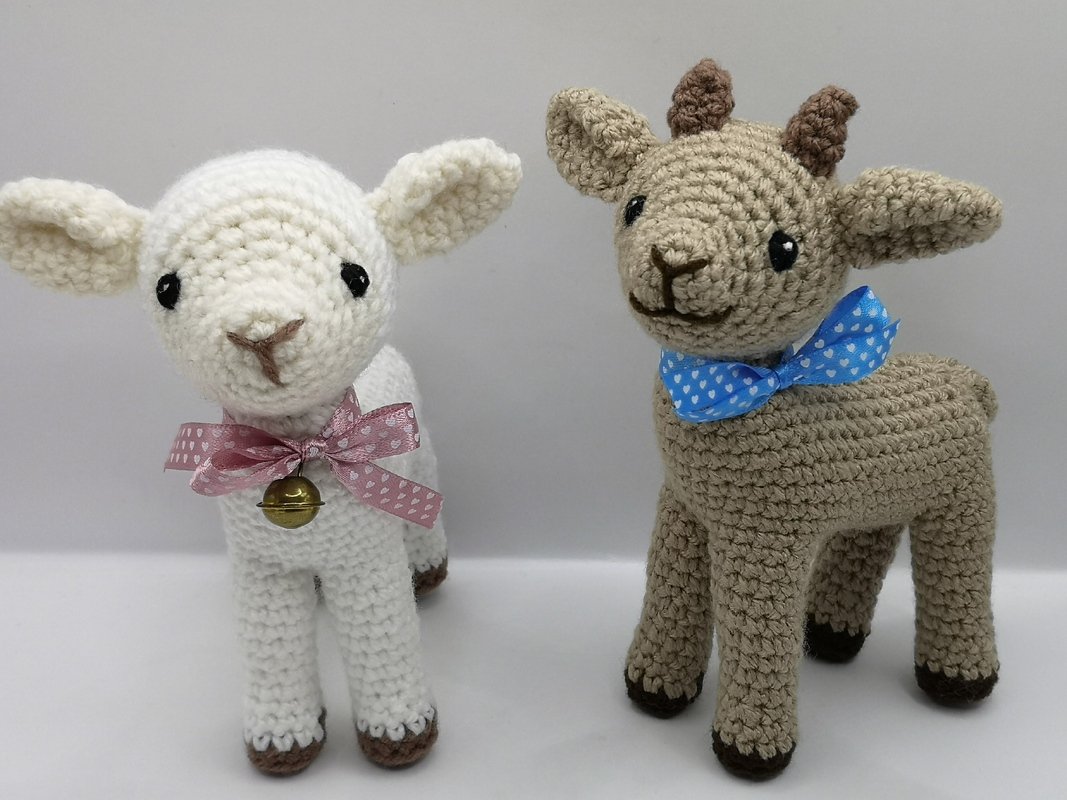 Mit dieser ausführlich beschriebenen und bebilderten Häkelanleitung kannst du 2 verschiedene Tiere häkeln: Lamm und Zicklein. Beide Tiere werden genau gleich gehäkelt, außer dass die kleine Ziege keinen Farbwechsel am Kopf hat und zusätzlich 2 Hörner bekommt. Außer Kopf an Körper wird hierbei nichts zusammengenäht. Wenn du bereits erste Häkelerfahrungen im Häkeln von Tieren hast, wird es dir sicherlich Spaß machen dieses süße Lamm oder Zicklein zu häkeln.