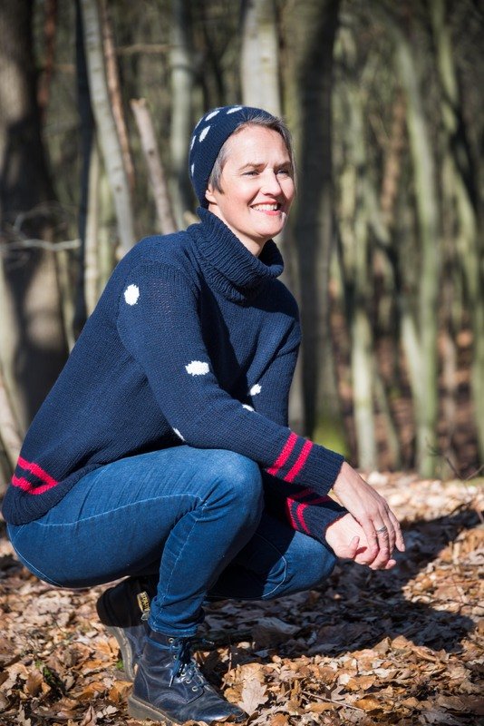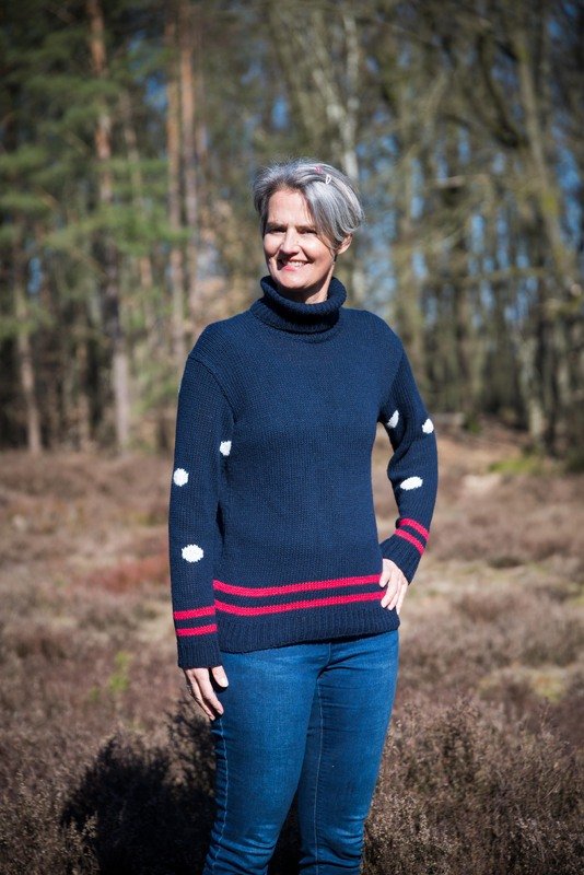 Außerdem werden verkürzte Reihen gestrickt, die Punkte im Intarsienmuster eingestrickt und der Rollkragen mit offener Maschenreihe angenäht, was aber alles in der Anleitung genau erklärt wird.