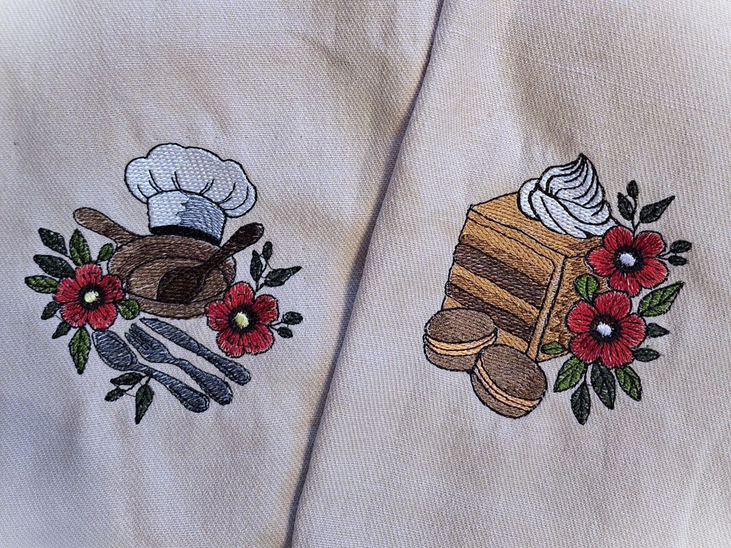 Stickdatei mit Motiven zum Thema Kochen und Backen.