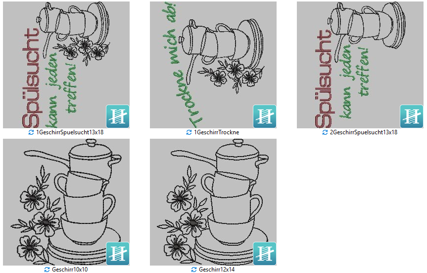 Stickdatei im SET zum Thema Küche und Abwasch.