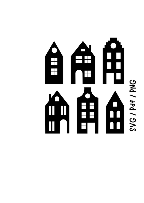 Sie erhalten Dateien für 6 nordische Häuser im SVG, PNG und Pdf -Format.