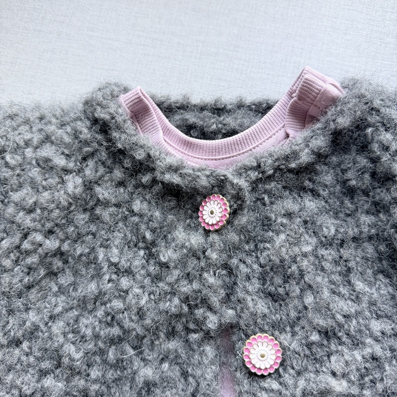 Das flauschige Bouclé-Garn macht die Jacke besonders weich und warm – perfekt für Babys und Kleinkinder, die sich frei bewegen sollen und trotzdem gut eingepackt sind.
