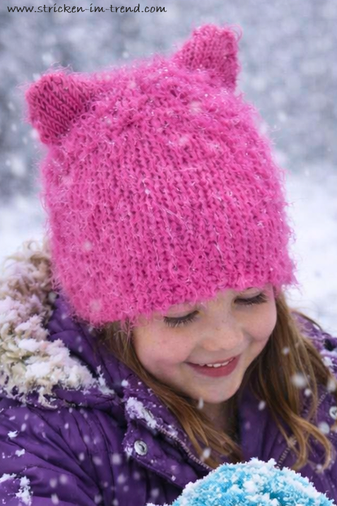 Durch das zweifädige Stricken entsteht eine wunderbar flauschige, warme Haube, die Kinder gerne tragen.