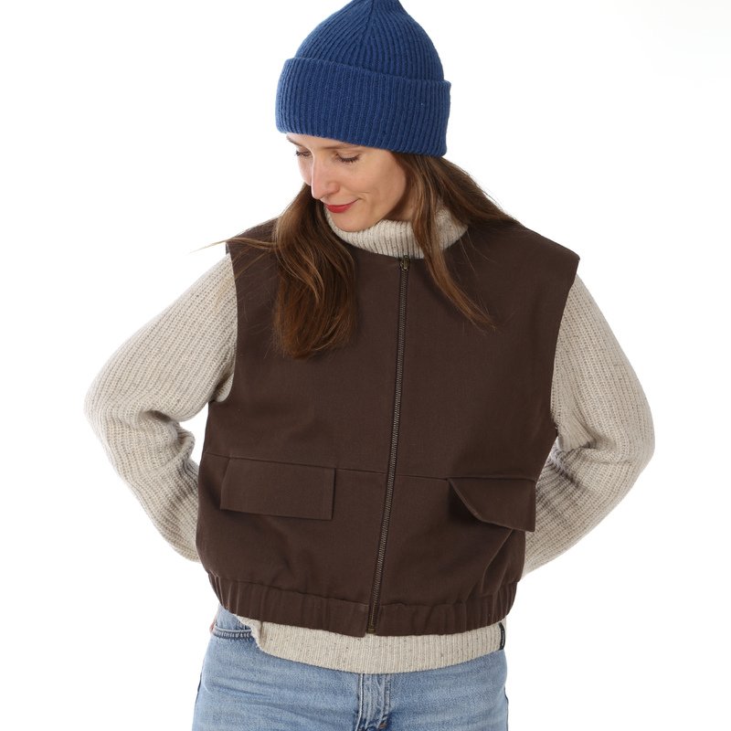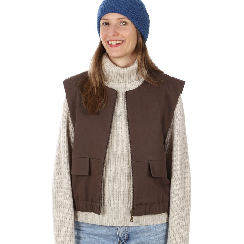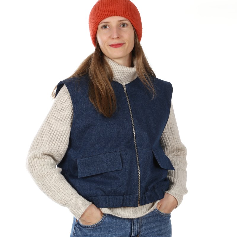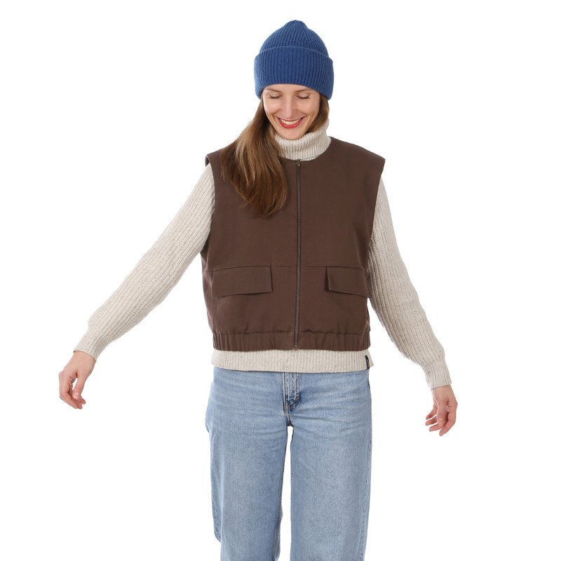 Die Weste FRAU BORA ist das perfekte Teil für alle, die einen coolen, modernen Look lieben. Kurz geschnitten u d mit breiten Schultern sorgt sie für einen angesagten Oversized-Vibe, der jedes Outfit sofort aufwertet. Der Reißverschluss macht FRAU BORA unkompliziert und alltagstauglich, während die eingearbeiteten Taschen mit Klappen nicht nur praktisch sind, sondern auch den coolen Utility-Style unterstreichen. Dank Futter trägt sich die Weste angenehm und bekommt eine hochwertige Verarbeitung. Ein besonderes Detail ist das Rückenteil mit Passe und Falte – das sorgt für extra Weite und einen schönen Fall. Der Gummibund am Saum bringt alles wieder in Form und rundet den Look perfekt ab. Ob über Shirt, Hoodie oder Kleid – FRAU BORA ist ein echtes Statement-Piece für moderne, selbstgenähte Outfits.