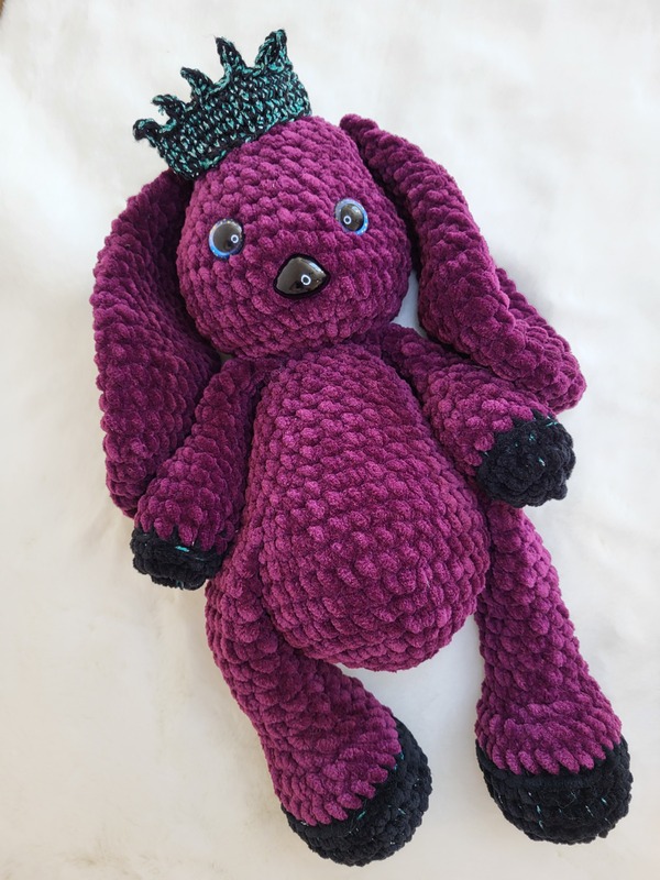 Diese PDF-Häkelanleitung in DEUTSCH ist für Anfänger geeignet. Die Einzelteile (Beine, Arme und Ohren) werden direkt am Körper eingehäkelt. Lediglich die Krone (optional) wird angenäht.