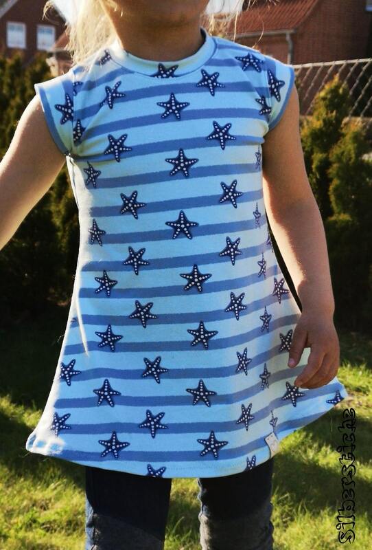 Gr. 86 – 152 deckt das Schnittmuster ab – und dies an den Ärmeln in Einzelgrößen, am Vorder- und Rückenteil in Doppelgrößen. Als Hingucker befindet sich auf dem Schnittmuster vorn eine schräge Unterteilung, die du nähen kannst – aber nicht musst. Wenn du den Schnitt unterteilst, kannst du dir die Seite für den Streifen aussuchen – oder du unterteilst gleich links und rechts.