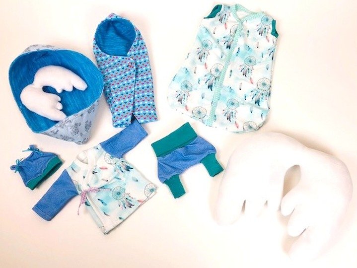 In diesem Set findet ihr: eine Mütze für den Kopfumfang von 16 – 37 cm, Shirt und Hose jeweils von Gr. 36-50, einen Schlafsack für Kinder von 32-52 cm Größe. Für Sternenkinder sind im Set eine Einschlagdecke in 5 verschiedenen Größen von winzigen 10 cm Körpergröße bis Gr. 50 sowie ein Schiffchen / kleines Bettchen ebenfalls bis Gr. 50 (in 4 verschiedenen Größen) enthalten.