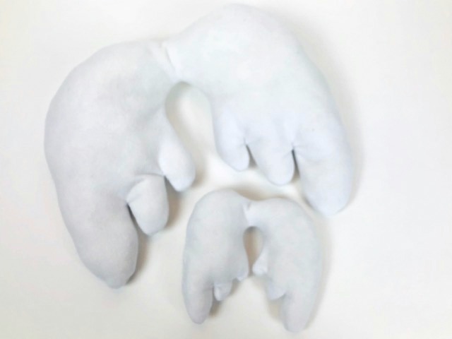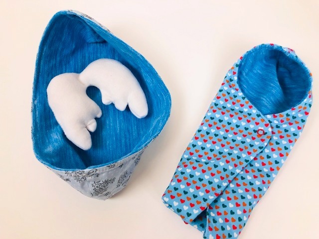 Für alle, aber auch für alle anderen, die Schutzengel benötigen oder auch einfach so als Geschenk findest du noch die Engelsflügel aus meinem Logo in 2 Größen: aus einem kannst du ein Kuschelkissen nähen, ein weiteres ist 15 cm groß und kann sowohl als Andenken dienen als auch z.B. als Beigabe ins Körbchen gelegt werden..