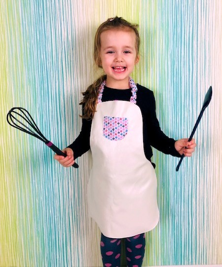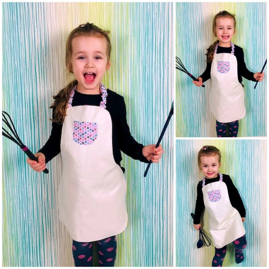 Nähbar ist sie in 3 Größen (bis 5 Jahre, 6-12 Jahre, ab 13 Jahre), sodass sie auch wirklich jedem kleinen Bäcker und jeder großen Kochelfe passt. Am Hals werden die Träger mit Gummizug versehen – so muss man dort nicht binden und auch die kleinen Kinder können sich die Schürze schon allein umhängen. Zum Zubinden auf dem Rücken ist dann natürlich noch Hilfe gefragt.