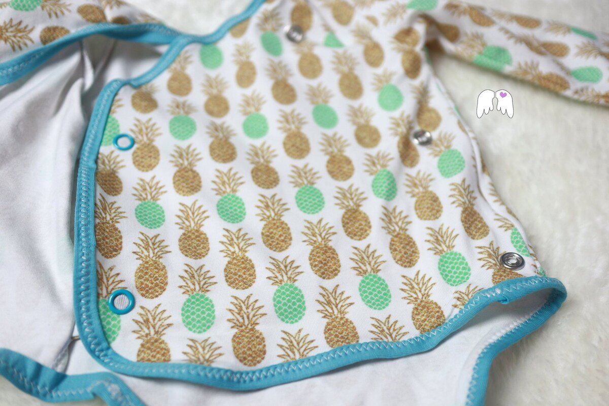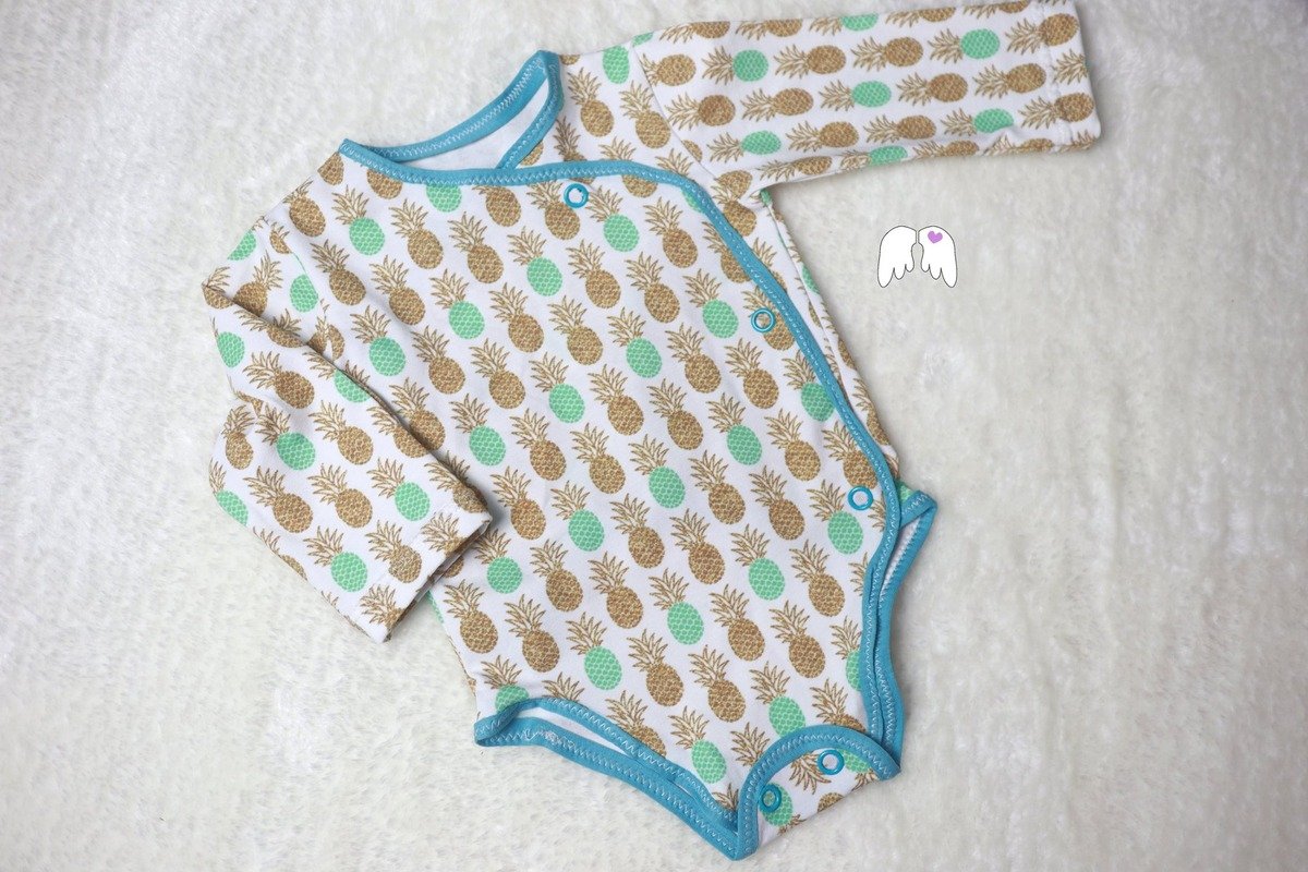 Hier in diesem Schnittmuster geht es um Finn – einem Wickelbody, den du sowohl mit Einfassband, Bündchen oder auch doppellagig und somit gänzlich ohne Bündchen/Band nähen kannst. Nähbar ist er aus Jersey oder Sweatstoff in den Einzelgrößen von Gr. 50-80.
