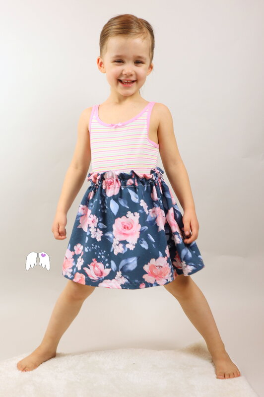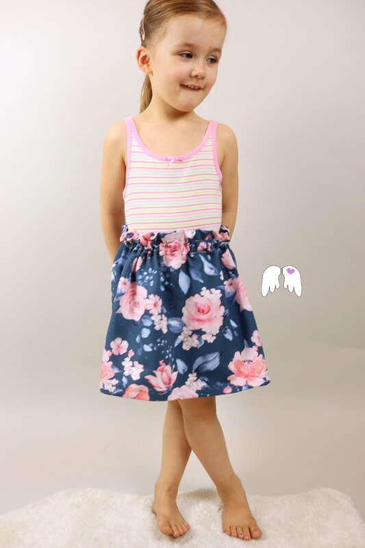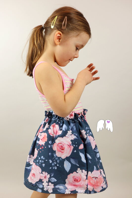 Das Gummi wird idealerweise direkt an den Bauchumfang des Kindes angepasst, und somit passt dieser Schnitt wirklich jedem Kind, welches zwischen 81 und 164 cm groß ist – versprochen!