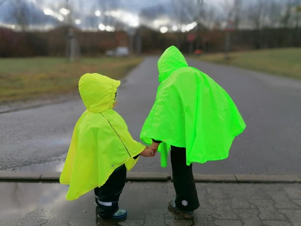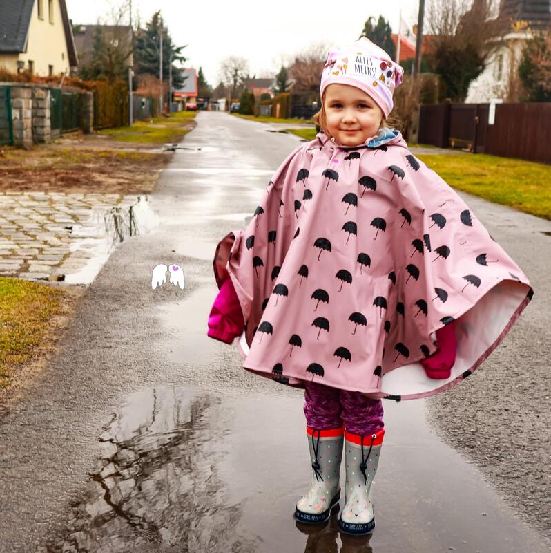 Vorn am Hals mit einer kleinen Knopfleiste zum besseren an- und ausziehen versehen kannst du das Cape ganz fix überstülpen. Ob im Winter über einer dicken Winterjacke, bei Schulkindern über den Ranzen oder beim Fahrradfahren, damit die Hose an den Oberschenkeln im Regen nicht komplett durchgeweicht ist, wenn du am Ziel ankommst: der Regentanz kann vielseitig eingesetzt werden.