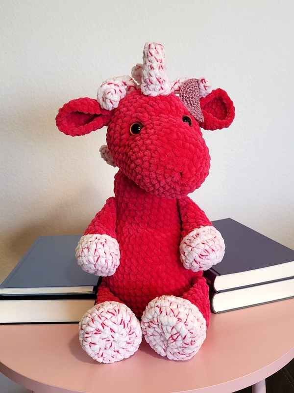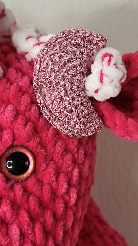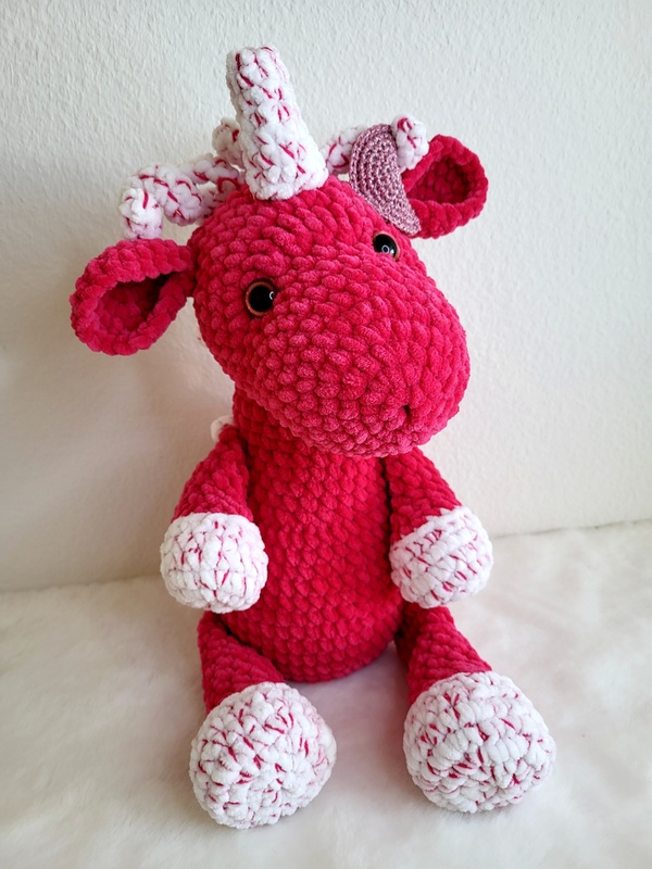Du kannst das Einhorn sowohl mit Chenille-Garn oder auch mit Baumwollgarn häkeln. Bitte pass entsprechend deiner Garnwahl deine Häkelnadelstärke sowie die Grösse der Sicherheitsaugen an.