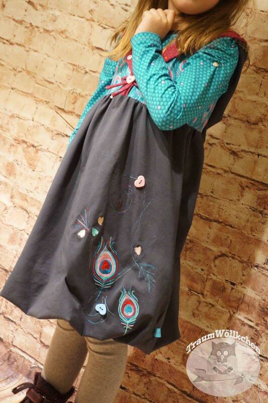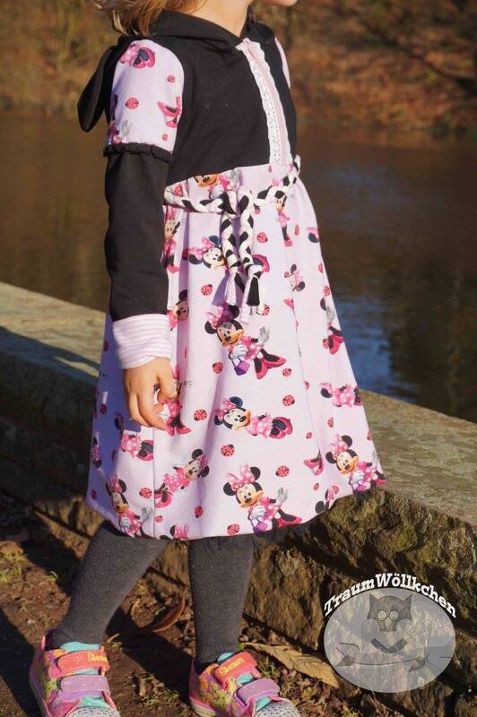 Das Schnittmuster umfasst die Größen 80–128 und bietet gleich mehrere Varianten, sodass jedes genähte Kleid zu einem individuellen Einzelstück wird.