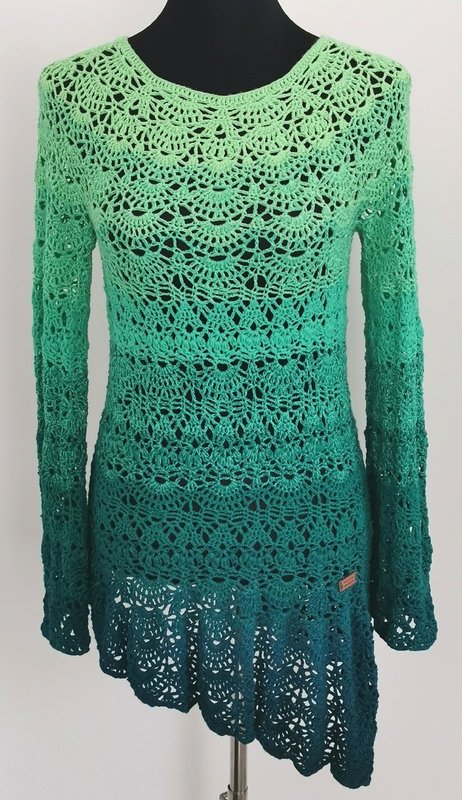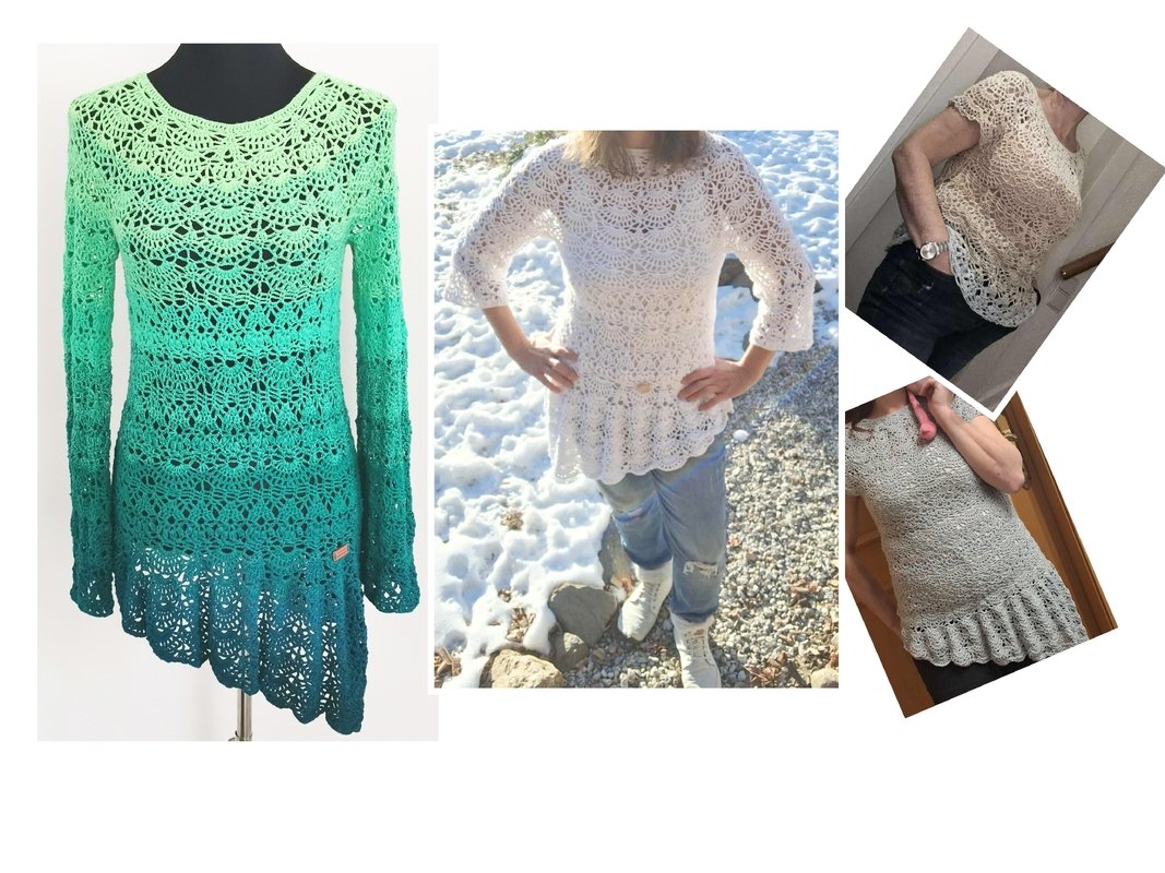 Willow ist ein äusserst wandlungsfähiges Kleidungsstück, es kann gerade oder schräg, in allen Längen, Größen und mit diversen Ärmellängen oder auch ganz ohne Ärmel gehäkelt werden.
