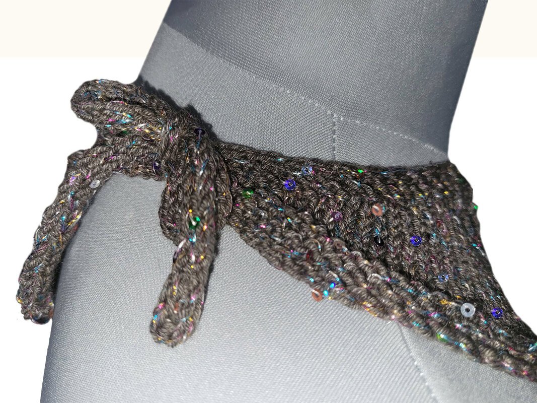 Dieses Mini-Tuch hat eine raffinierte Form, die sich perfekt an den Hals schmiegt, ohne dick aufzutragen – ideal, wenn du nur einen Hauch Wärme und ein bisschen Blingbling brauchst. Du kannst es beidseitig tragen, beide Seiten sehen sauber und schön aus, so dass du dir beim Anziehen keine Gedanken über „oben“ und „unten“ machen musst.