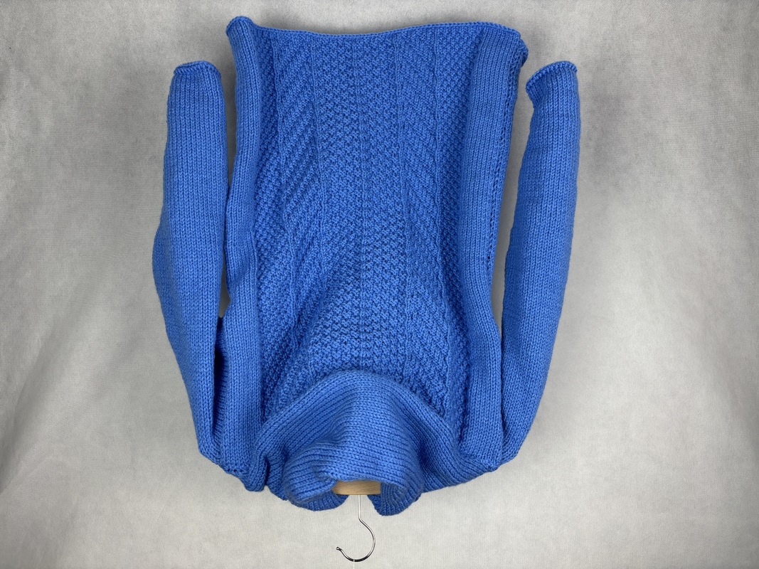Gestrickt wird mit Aran-Garn und Nadelstärke 5 – so wächst dein Pullover angenehm schnell und eignet sich perfekt als entspanntes „Fernsehprojekt“.