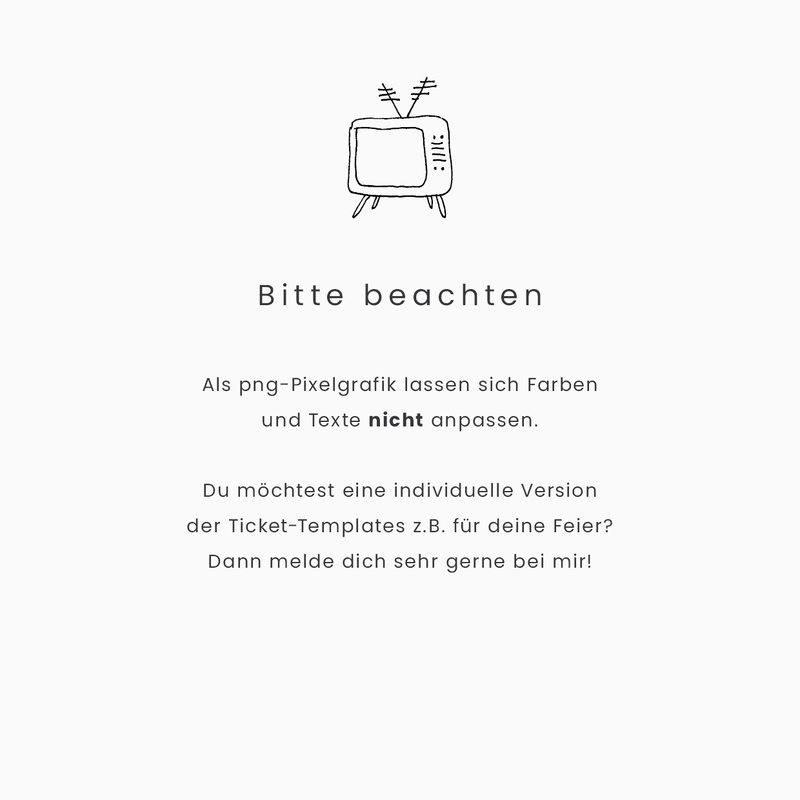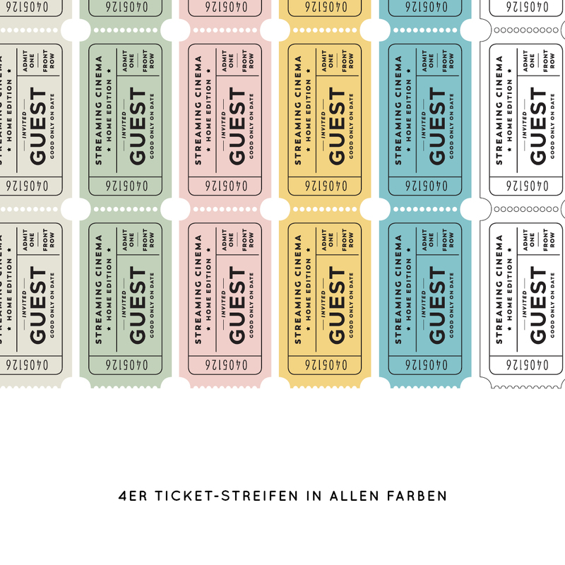 Alle Designs kommen in fünf Farben und einer Version mit weißem Hintergrund. Das ist für den Fall, dass du die Hintergrund-Farbe nicht drucken möchtest, sondern farbiges Papier benutzt. Als pngs sind die Grafiken ganz schnell und einfach zu plotten: Weil alles in einer Ebene und auf einem transparenten Hintergrund liegt, erkennt dein Plotter die Außenkanten und schneidet nur die Kontur und Perforationen. Natürlich kannst du so viele Tickets plotten wie du magst und kannst auf einer Seite auch unterschiedliche Farben kombinieren. Wichtig ist aber, dass du die Hintergrundfarben und auch die Texte nicht ändern kannst, weil eben als Pixelgrafik alles in einer Ebene liegt.