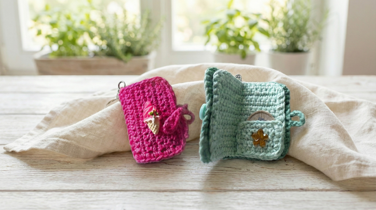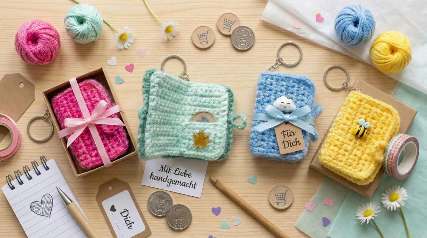 Häkle dir ein zauberhaftes Accessoire! Dieses kleine Buch ist nicht nur ein dekorativer Schlüsselanhänger, sondern auch ein praktischer Begleiter. Dank des integrierten Tascheneingriffs bietet es Platz für einen Einkaufschip oder eine gefaltete Botschaft. Ein perfektes Mitbringsel oder Last-Minute-Geschenk „Handgefertigt mit Liebe“.