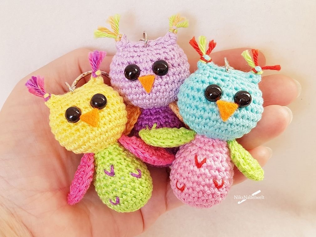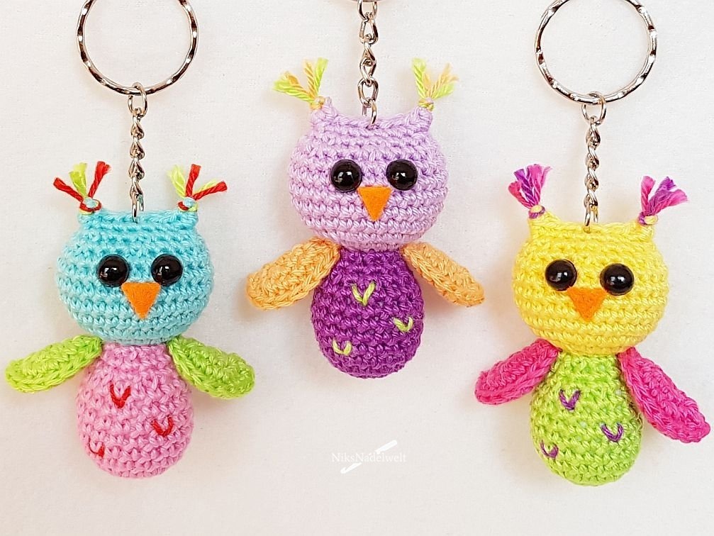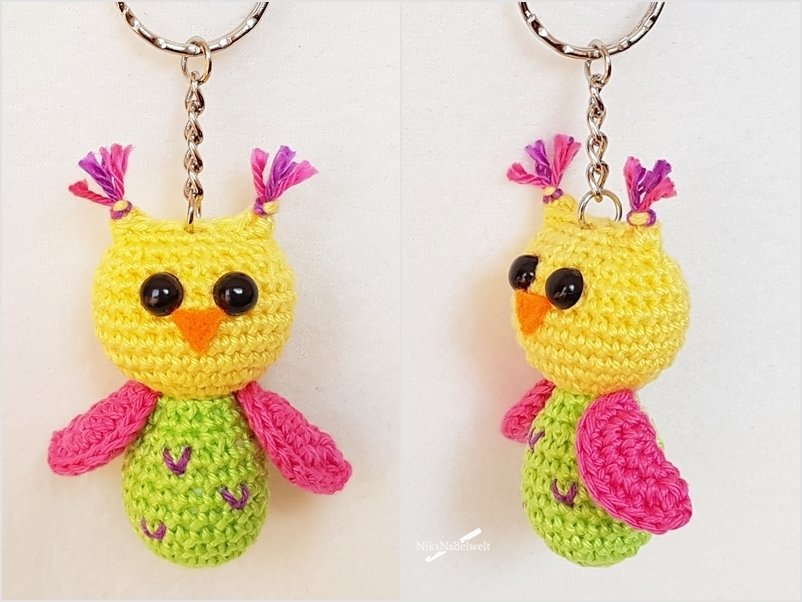 Das Häkeln kleinerer Teile mit wenigen Maschen, sowie das Vernähen beim Schlüsselanhänger Glückseule ist etwas "fummelig", aber auch ambitionierte Anfänger können es schaffen, denn viele Detailfotos zeigen Schritt für Schritt wie die Glückseulen fertig werden.