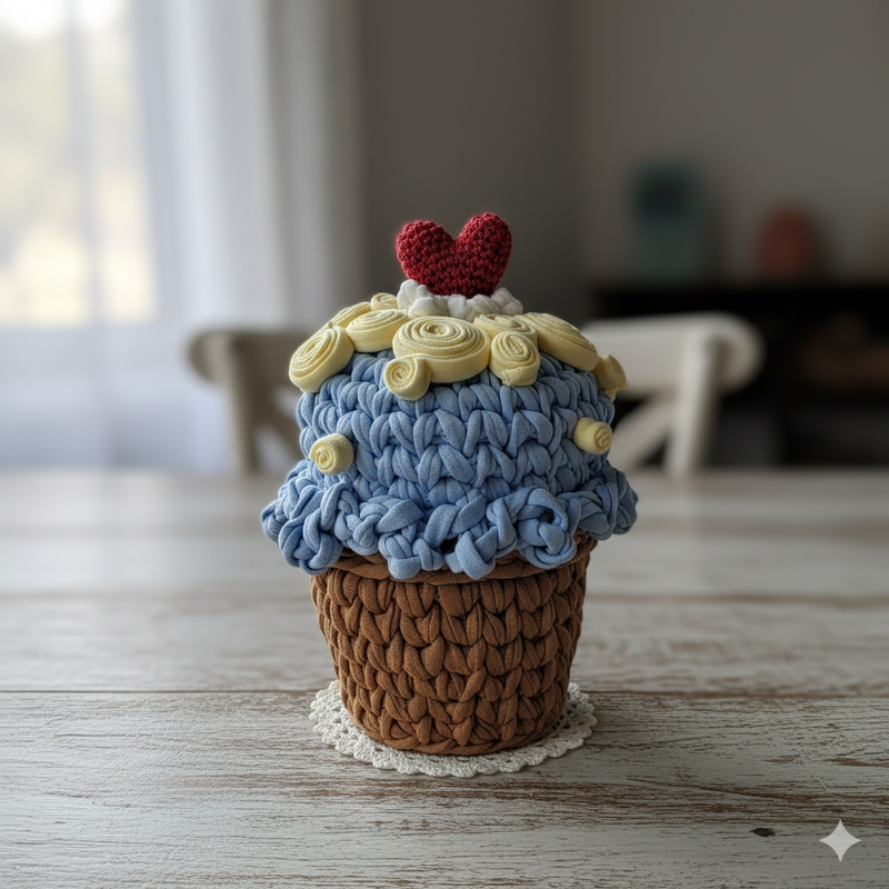 Mit dieser Anleitung lässt sich dieser wunderschöne Cupcake, der auch noch ein kleines Körbchen ist, nachhäkeln.