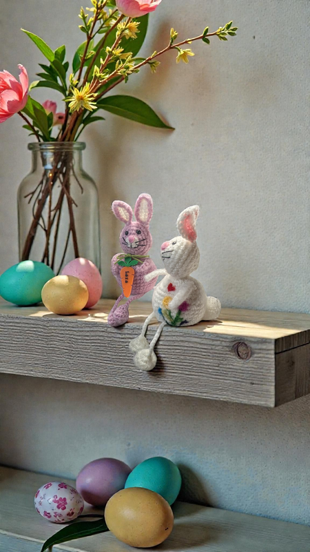 Mit dieser Häkelanleitung zauberst du niedliche Osterhasen Kantenhocker, die jede Frühlings- und Osterdekoration zu etwas Besonderem machen. Die Hasen sitzen locker auf Regalen, Fensterbänken oder Kanten und bringen mit ihren baumelnden Beinen und liebevollen Details sofort gute Laune ins Zuhause.