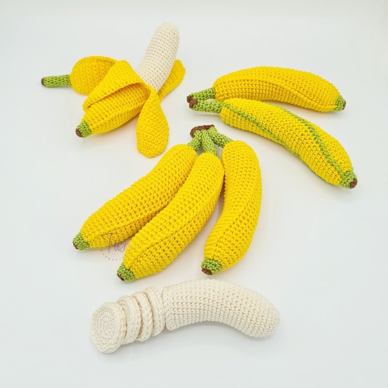 Mit dieser Häkelanleitung häkelst du ein Banane Spielset für die Kinder Spielküche, den Kaufladen und Rollenspiele.