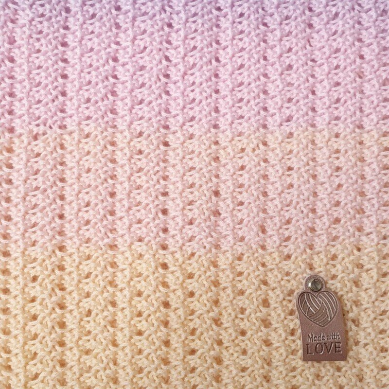 Das feine Lochmuster und der sanfte Farbverlauf machen den Schal zu einem leichten, eleganten Accessoire für warme Tage.